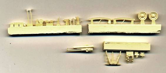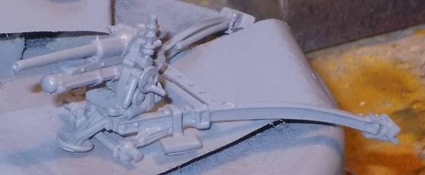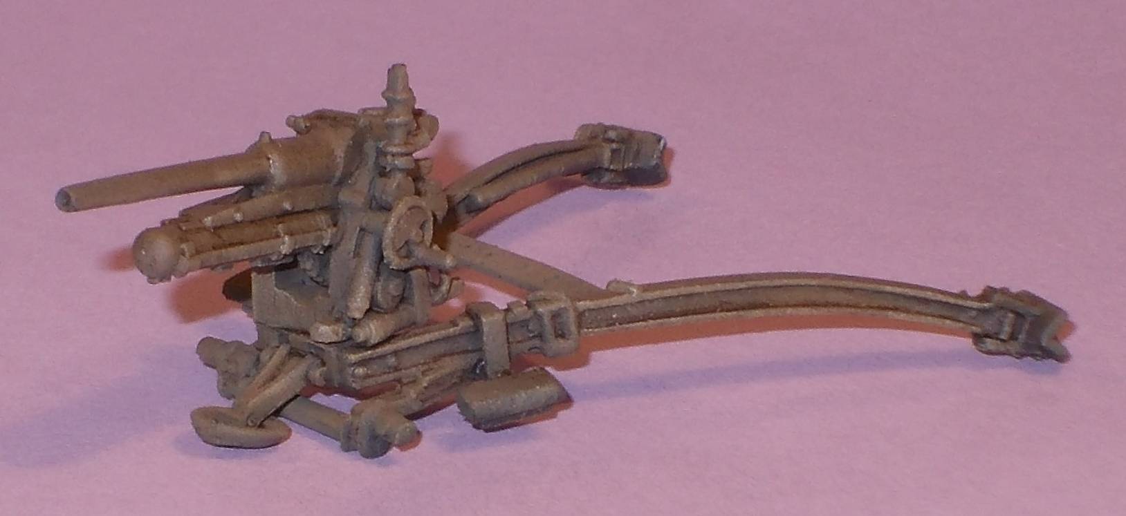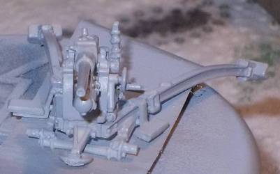 The parts are very crisply molded, and the lay-out allows for very easy removal of the casting blocks. An example is the way the gun cradle is attached. If you look closely you see that it is only attached to the "carrot" at the two ends. If you put your knife in the void in between, and apply some force, it easily snaps off at the right place.