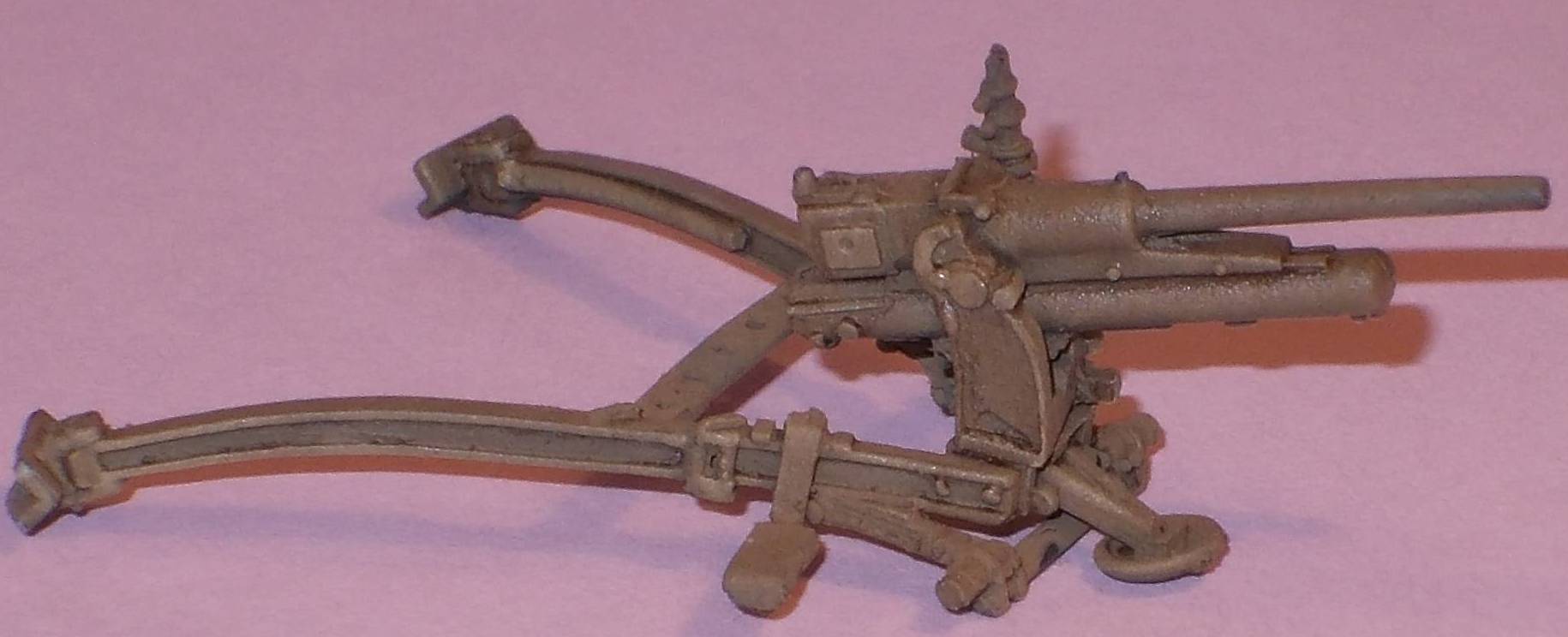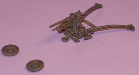 Assembly goes as fast as your glue can dry, although it was not always clear how you need to attach the parts for firing mode or for transport mode, as both options are shown on the same drawing. What was confusing for me was that some parts are only shown in one of them. For instance, the two seats are not mentioned in transport mode, so I don't know what to do with them if I go for that option. Likewise, the wheels are only mentioned in transport mode. A quick look on the internet revealed that in firing mode the wheels were removed and just put on the ground next to the gun. This lowered the gun considerably and aided its concealment.