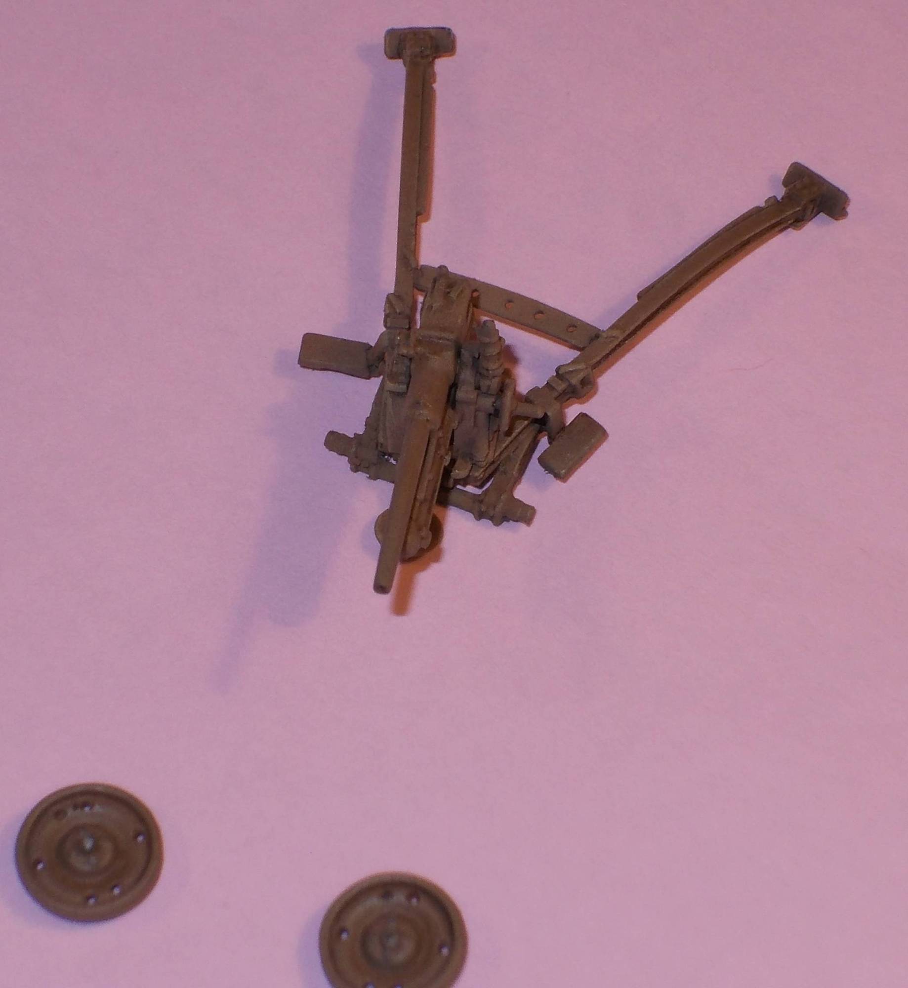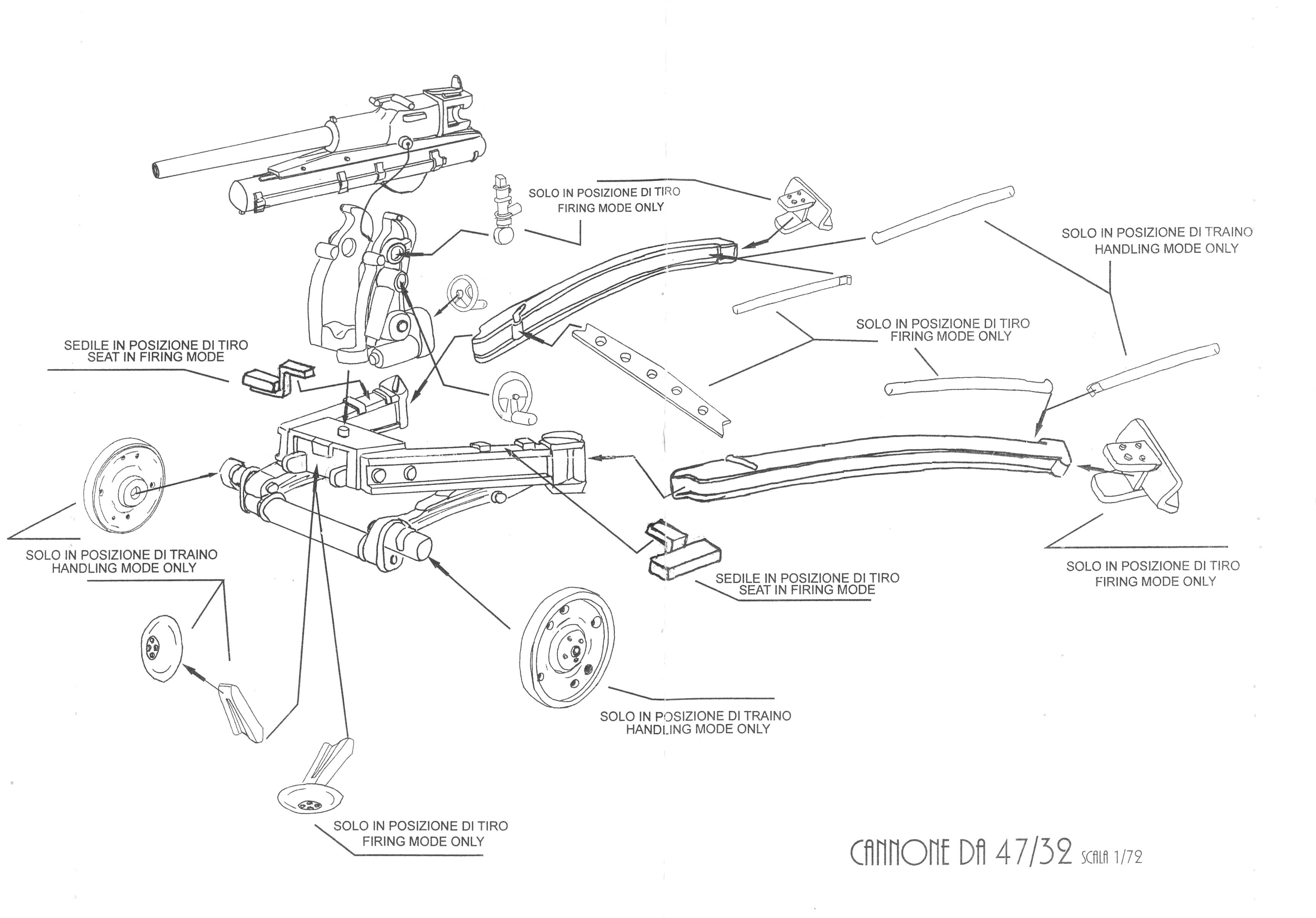 The website of GBModelli has a page where pictures of the real gun are shown. It seems that this gun differs a fair amount from what the kit gives you. Examples are the wheels and the way the spades are attached. This need not be surprising, as pictures found of this gun found on the web show many small or large variations. The wheels being the most noticeable.