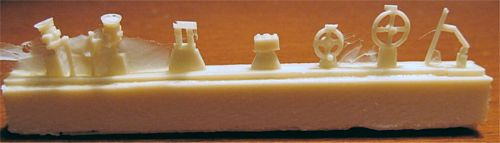 Parts are finely cast in the typical cream-colored resin, with no short shots, pin holes or warpings, but with some light flash that will be easy to clean up.