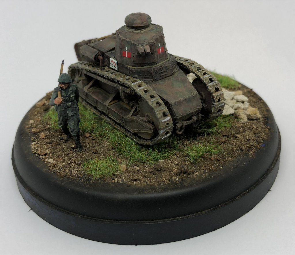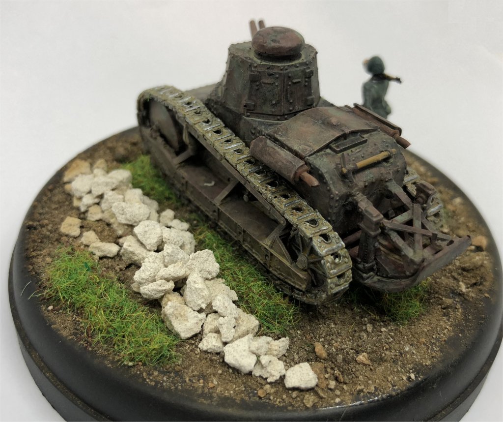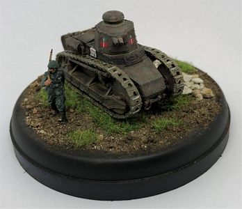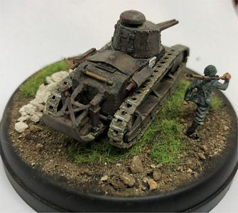 This article has all the information needed to finish a model of the FIAT 3000. This vehicle was operating in Sicily, 1943, during the Allied landing, so it was painted in dark green spots FS14036 on a red brown FS30109 base. The license plate and markings come from Italeri M13/40 fast-build kit. The FIAT 3000s operating in Sicily were very clean (they had been inspected by the King of Italy during an official visit some months earlier !), so weathering is minimal. The figure comes from the Italian Infantry by Airfix.