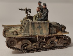 Finishing the model The vehicles entered service with the Wehrmacht in late 1943 and remained operative for less than 2 years. They were re-painted in the usual German sand, with green stripes of different sizes and directions, in some cases air sprayed and in others hand-painted. Most of them had two German crosses on the side, a few had numbers but nothing else. The vehicles looked rather clean (probably they never saw much action), with no extra stowage. Keeping this in mind, the kit was painted and weathered accordingly. The three figures of the crew have relaxed poses, as it can be seen in the rather few photos of the vehicles in service. Thanks to Giorgio Brigà (GB Modelli) for the review sample.