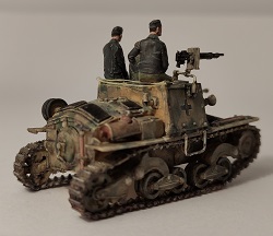 | I started by removing the bigger pieces from the molding carrots. The parts that required the most care were the sprockets: the teeth can be easily damaged, although it will be necessary to remove some of them to position the tracks later on (it must be said that the teeth are indeed too few and too big, but I think it would have been impossible to cast them much better). Parts were then cleaned up with scalpel and sanding paper. The resin is very pleasant to work with: not too brittle, nor too flexible. Clean up is limited, by the way, with very little flash and minimal molding pegs. Five pin holes were found and filled in. Assembly was started with the bogies. One half of each roadwheel is attached to the rear half of the bogie truck, the other half needs to glued to this part, after which you can install the face of the bogie truck. The wheel halves have no locating pegs, which makes it a bit more difficult to install them correctly, especially when working with fast drying superglue. Some wheels that are attached to the bogie are not perfectly aligned. The easiest way around this was to allow for a certain amount of "toe-out" between the wheel halves. I figured the problem would not really show as long as the outer wheel halves were well-aligned. Keep more than half an eye on the bogie parts, as there are arms with and arms without return rollers, and you might easily mix them up. The drive-sprockets have locating pegs. Be careful, though, as the pegs are installed in a way that only one of the outer halves will line up with a given inner half. It is quite obvious, when you pay attention. The two small arms connecting the anterior bogie train to the second return roller are extremely thin and must be positioned according to photos of the real vehicle: in my sample, one of them had detached from the sprue and was nowhere to be found, so I had to build it from scratch. The resin tracks come as pre-assembled sections, four per side. The tracks are not too bad if the level of detail is concerned. I found it easier to install the tracks by removing some teeth where the tracks meet the sprocket and the rear idler. Speaking about the idler, GB Modelli correctly reproduced in this kit the later-type version of this piece, which is different from the original, which was mounted on the earlier vehicles in service with the Italian Army. The whole superstructure of the vehicle is cast in a single part, which is good: it must be correctly aligned with the rear wall of the casemate, which must be done accurately to avoid any "steps" which were not present in the real vehicle. The German Army removed the lateral guides for the upper canvas and the canvas itself, while mounting an antero-lateral guide for a shielded Breda MG: all these modifications are correctly reproduced. The interiors are sparse but mostly correct, as far as we know: when placing inside some figures of the crew, there is not much which will remain visible anyway. Scratchbuilding the front and rear towing hooks, as specified in the instructions, is the last step of the build, after which the build is finished.