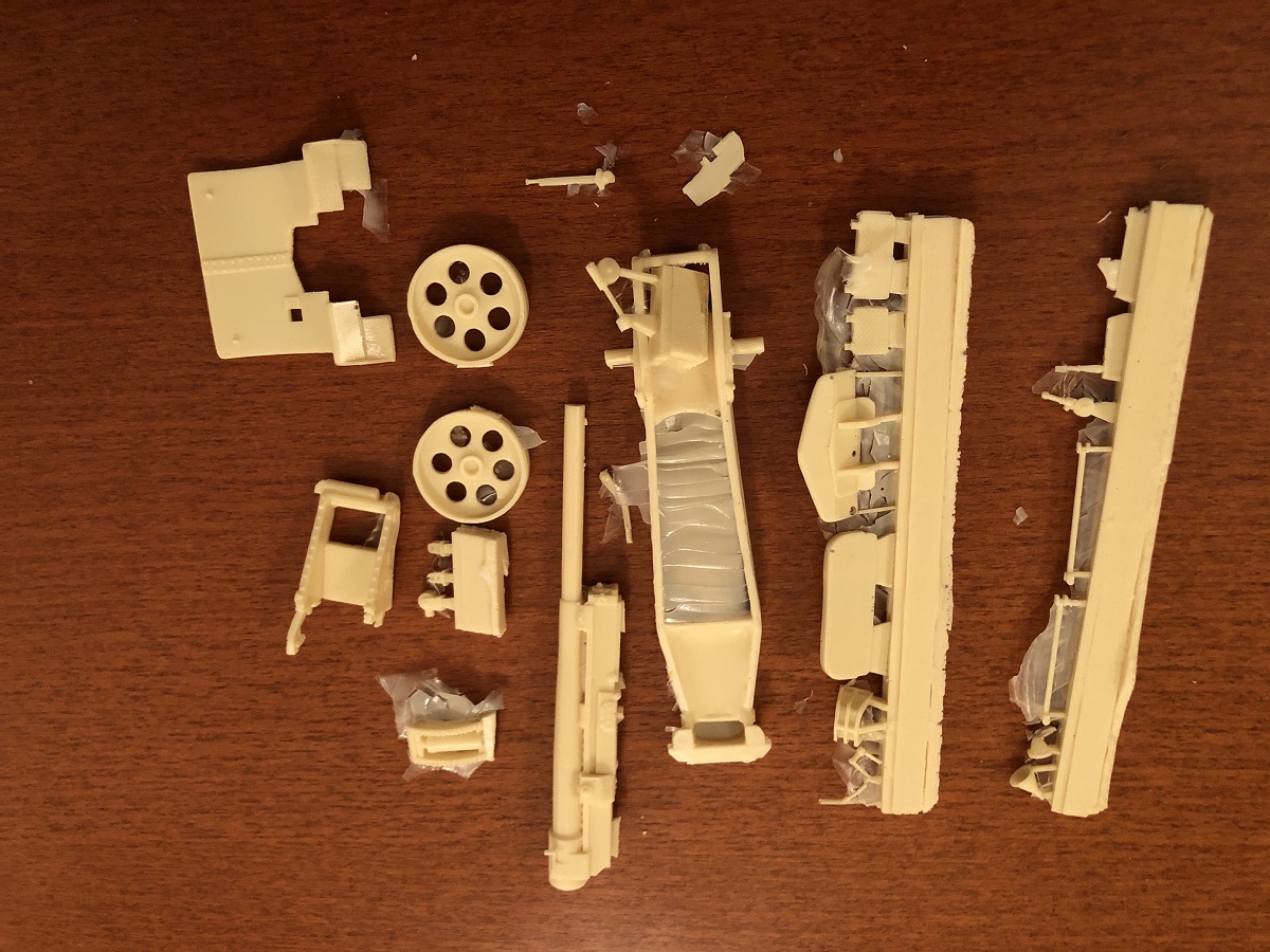 | The 15 cm Kanone 16 (15 cm K 16) was a heavy field gun used by Germany in World War I and World War II. Guns turned over to Belgium as reparations after World War I were taken into Wehrmacht service after the conquest of Belgium as the 15 cm K 429(b). It generally served on coast-defense duties during World War II. I am happy to see that GB Modelli has started protecting their kits with a sturdy cardboard box, while previously they were sold in simple, unprotected plastic bags. The parts are very crisply molded, with quite a bit of flash, which is something you must expect from limited-production resin kits; being very thin, it can be easily separated form the pieces. No warping, no pin-holes and minimal attachment blocks. The resin is soft enough to be easily cut with a sharp hobby knife without splintering or excessive effort. The model is well-engineered, so that only a limited amount of scratchbuilding and adding details is needed. The website of GBModelli has a page where pictures of the real gun are shown, which will further ease construction.