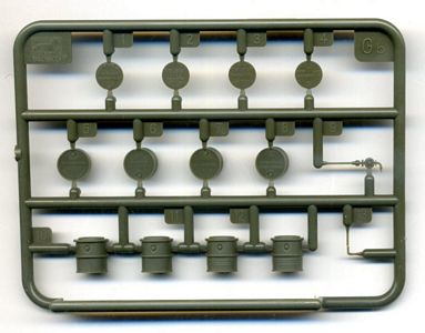 The box contains four sprues, one containing the jerrycans (2x) and one containing the drums (2x): in total, 8 drums and 24 cans can be assembled, plus 2 pumps (one for each sprue). In fact, no assembling is needed for the jerrycans, which are supplied as a single piece with handle and cap already in place. On the other hand, the drums need assembling of three parts. The handpump is a two-part assembly and it can be very useful if building a small scene of personnel filling jerrycans from drums. There are two different types of drums, differing from each other in the rib detail. Doing some measurements, it seems that WW2 German 200L drums were 54.5 x 86.5 cm, or 7,56mm x 12mm in 1/72: these drums measure 7.7mm x 12mm, which I would call almost perfectly in-scale. German 200L drums had some markings on the flat top and they are correctly reproduced here: the drums bear the writings 200L, Kraftstoff, Feuergefährlich, Wehrmacht or Heer arranged in different ways; you can also read 1943 and 1944 on two of them, which would clearly prevent you from using them in an earlier setting. | ||