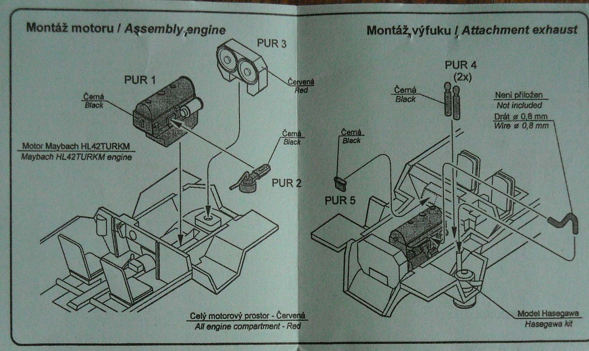 flash. With the advent of the newer Dragon kits for the Sd.Kfz.251, I guess that CMK will eventually release a similar set for these kits (Ausf.C and Ausf.D). In the meantime, I don't think it will be a big deal to get this engine to fit in the Dragon kits. The Dragon kit has the added advantage that the engine bay doors are already separate pieces, which is not the case with the Hasegawa kit. While CMK has PE replacement hatches in its range, these are not included, so the modeler either has to cut open the engine doors very carefully or scratchbuild some replacements. |