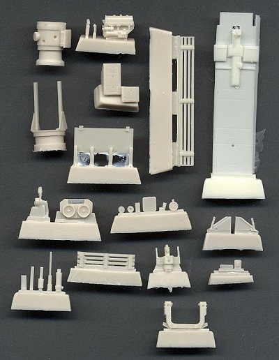 The resin parts are extremely well made, as to be expected from this company who has made many, very high quality, resin detail sets for aircraft models for many years. There are no molding imperfections, very little flash, and superb detail. As you can see, the entire infrared spotlight system is included in resin, as are a complete engine, a new floor for the fighting compartment, and many other details.
