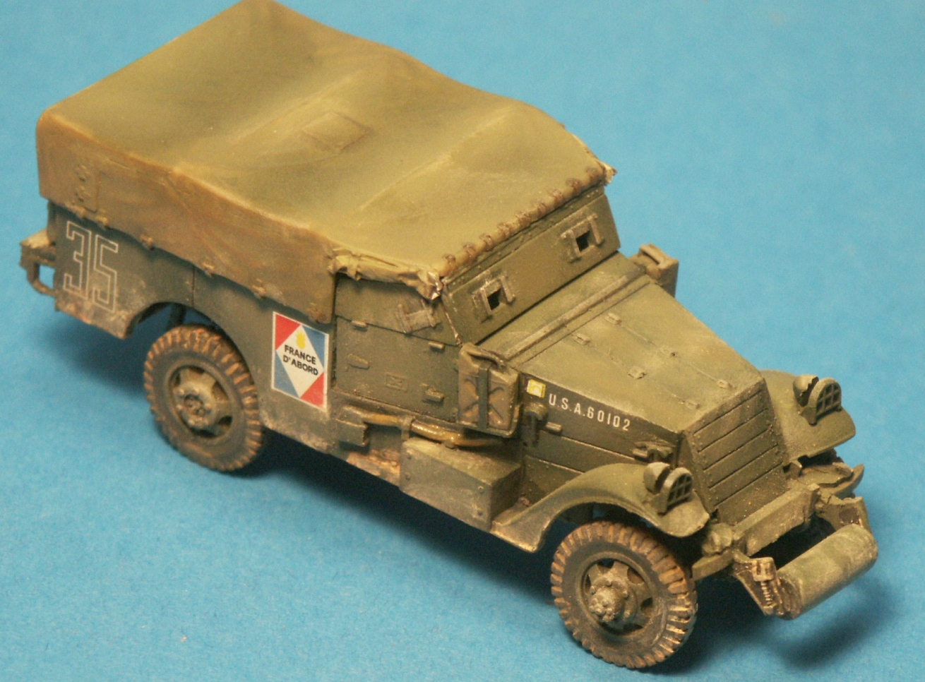 The Scout Car is painted in olive drab. By the silvering of the decals, these were obviously applied before I learned to apply a clear gloss coat under the decals