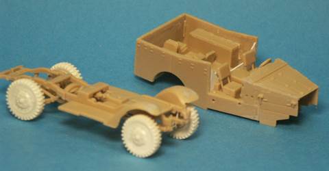 Both the frame and the body suffered from warped plastic parts so had to be glued and clamped in stages till the glue set. I left the kit radiator off the frame as it is unseen when the model is assembled and actually got in the way of the resin replacement part for the louvers.