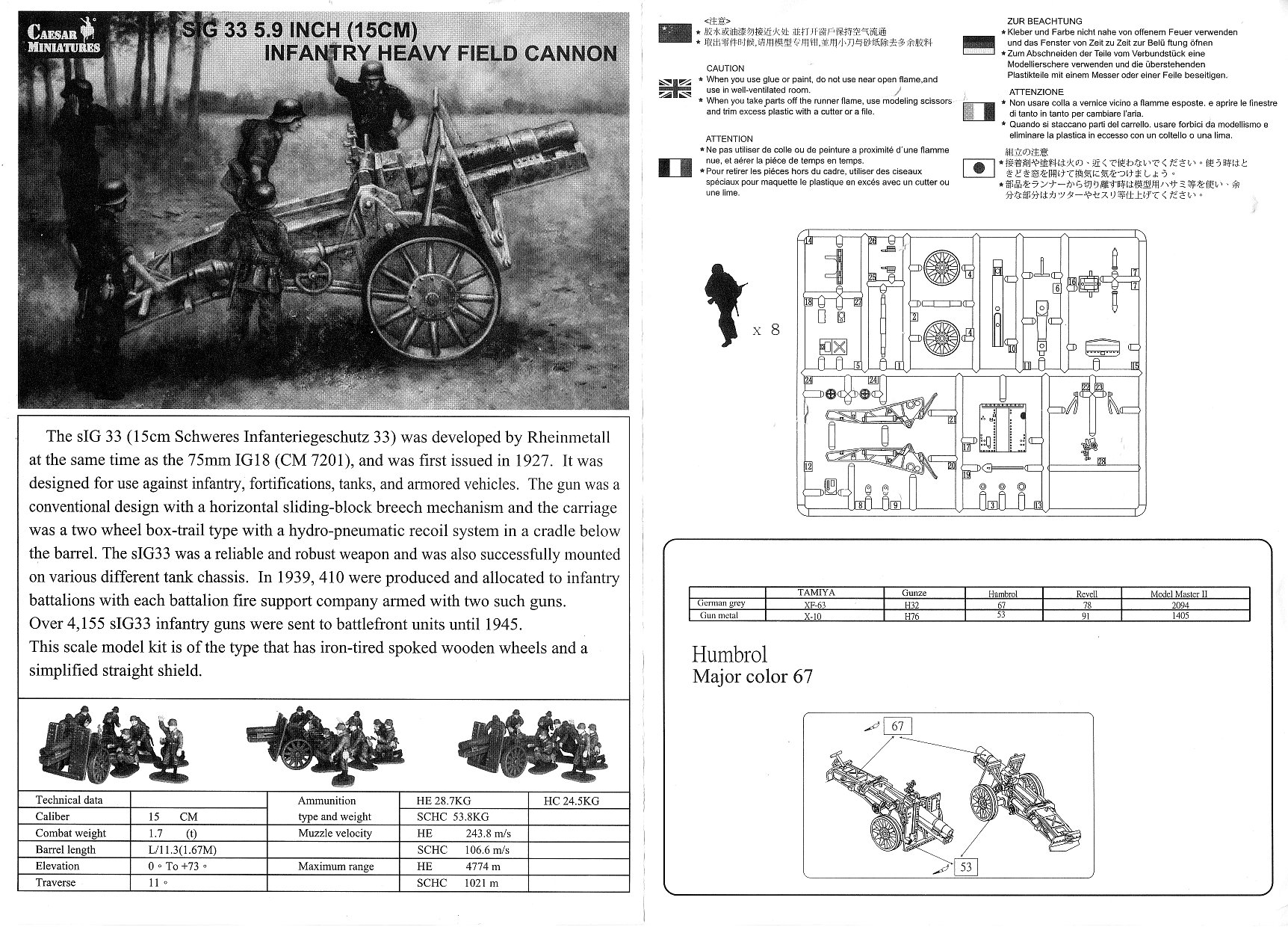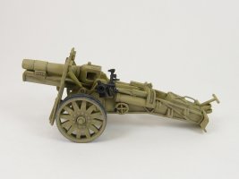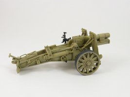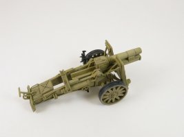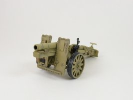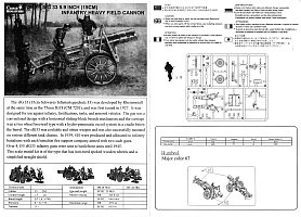 The 15 cm sIG 33 (schweres Infanterie Geschütz 33) was the standard German heavy infantry gun used in the Second World War. It was the largest weapon ever classified as an infantry gun by any nation. Approximately 4,600 units were manufactured during the war by Rheinmetall (gun’s designer), AEG-Fabriken and Bohemisch Waffenfabrik. [1] Inside the box you get one sprue consisting of 31 parts, an instruction sheet and a set of 8 crew figures (my kit was used and did not have the crew). There