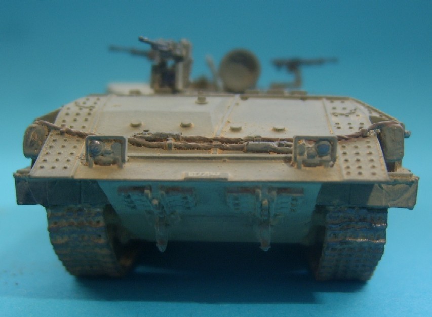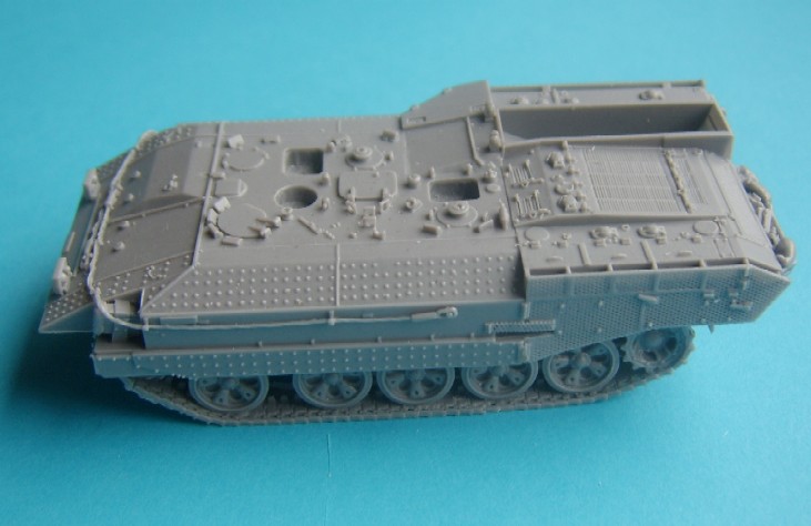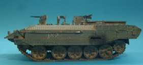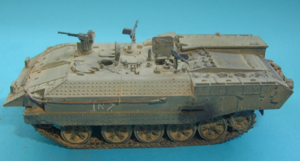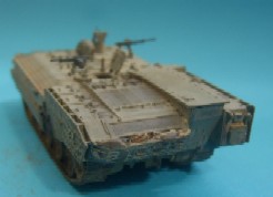 At long last, one model I never thought that we would see in 1/72nd from any manufacturer and as usual after starting to build my own and one gets released ! along with all the others I am building to follow, so it is back to the drawing board for me. The Achzarit is a Heavy APC based on the T-54/55 hull, of which the Israelis' captured a lot of during the 1973 war. The infantry requested a survivable APC for urban combat, able to withstand strikes from the numerous RPGs' and other light AT weapons, the ideal idea, would have been to use the Merkava hull, but as the production of Hulls were needed for the Gun tanks. The solution was found in the IDF storage depots, where several Hundred T-54/55s' plus some that had already been converted to the Tiran were laying. it was available, suitable, due to its thick armoured shell and a very cost effective use of surplus and obsolescent hulls. Back to the kit/Model, Well was it worth the wait? I'll say so! Anybody familiar with the Combat 72 range from Cromwell Models will know what to expect, the Hull, Tracks and most other parts are moulded as one huge block of Resin,with just the hatches and machine guns to add, but the detail is Fantastic. The purist may wish to change a few features, mainly the Toga Armour at the rear, as this could benefit from some PE and is not too big a job to change, even for a novice to conversions. As you can see from the pictures, the hull is well detailed with 4 of the six hatches being able to pose open. The few bits that there are to add, mainly the hatches and guns. The ammunition feed for the sight mounted gun is there, unfortunately mine broke towards the top. The kit scales out to the plans that I have although the nose is shorter than my plans, but judging from photos' of the real thing the Cromwell kit looks to be right, I have no actual measurements for the Achzarit, but I do for the T-54/55 on which it is based. The track and wheel spacing is correct. All in all a very nice and simple kit to put together, The rear ramp is detailed both inside and out should you wish to display it open.The level of detail is amazing for the simplicity of the kit and it will appeal to both wargamers and the static modeller in equal measure. No decals or Instructions are included in the kit, so a few references might be helpful, but the pictures on the net are more than enough help. One piece I did have trouble with, was this small piece, As far as I can work out it is a mortar and it fits next to the LHS hatch, the only place I have seen it is on the Blast Models kit, I have not seen any photos of it actually in place on the vehicle. So What does it build like ??? Well very easily, it takes all of 20 mins to put the kit together, but then another 48 to paint and finish it ! There is very little clean up of parts to do, just a few mould seams around the front and rear fenders. The only change that needs to be done should you wish to model the vehicle closed is to cut some resin from the bottom of the sides on the rear troop exit roof and to cut down the operating ram on the RHS. Here's what it looks like made and painted. A great model to build, I had fun with the weathering and painting. I recommend this to all. References Modern Israeli Tanks and Infantry Carriers 1985-2004 by Marsh Gelbart Osprey publishing New Vanguard 93 Israeli Tank Based Carriers by Marsh Gelbart, Military briefs Various Web sites and discussion forums for pictures. http://idfmodelling.free.fr/refvehicle.html http://www.israeli-weapons.com/ http://www.geocities.com/moshe_madness/temple_mount_war/photos.htm http://www.waronline.org/en/
