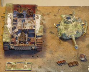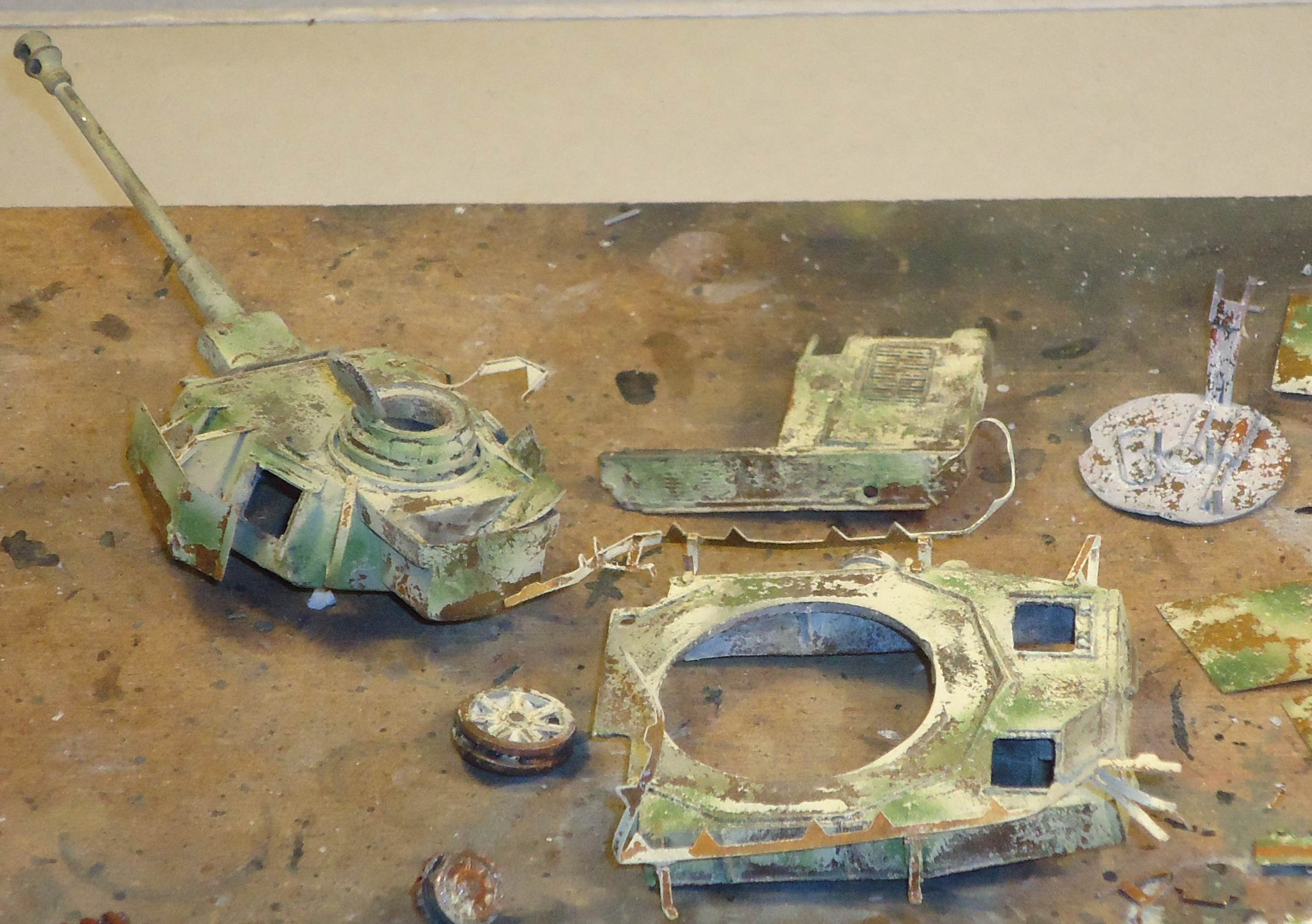 Vestiges of Zimmerit can be found. I assume the rest has burnt