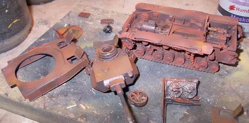 An uneven coat of Humbrol 132 satin red followed. This is an orangy