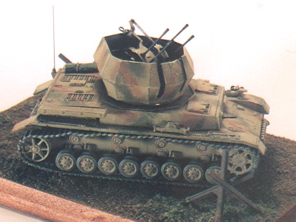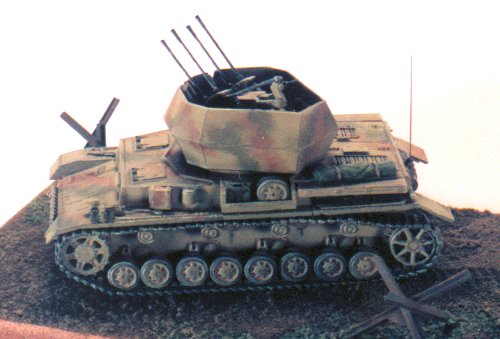 The main problems of the ESCI kit, if you can find a copy of it now, are thickness of the turret sides and the 20 mm gun barrels. In this, ESCI was inhibited by the technology of injection moulding. Also, there are a few problems with the ESCI Panzer IV chassis. While you can thin down the sides of the turret, to me it always looks too chunky. The more recent Hasagawa kit of the Wirbel suffers from much the same problem (plastic thickness) and the "unsatisfying" rubber tracks. The actual quad 20 mm in the turret of the Has. kit is probably on par with the ESCI version, although I prefer the latter.