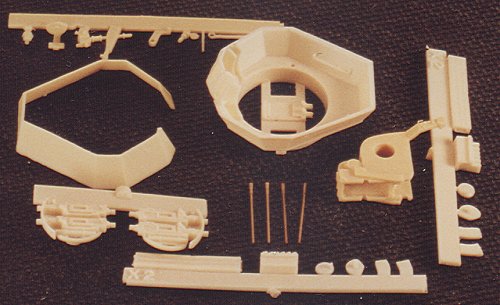 Having both the main stream kits, I was surprised to learn that Al-by of France had produced a Wirbelwind "Combi-kit." Combi-kits contain a full, injection moulded kit (usually by ESCI) plus a resin upgrade to create a new version. Currently they seem to have gone out of production as Al-by's supply of ESCI has run out. The WW Combi-kit consists of a full ESCI Panzer IV (in the original plastic bag and with hard track) and a baggy of resin and turned brass. Obviously it was Al-by's intention to fix the main shortcomings of the ESCI kit - the resin pieces seem to be based on the ESCI but improved. The turret walls, for example, are paper thin. The 20 mm guns are remoulds of the ESCI ones, but the gun barrels have been removed and holes provided for positioning the turned brass barrels (also provided in the Combi-kit). All the other ESCI WW parts are reproduced in resin, although some of them have also been thinned down.