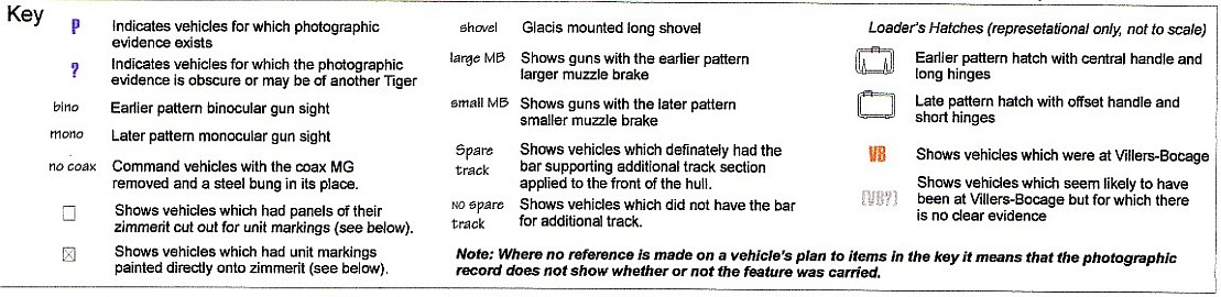 Included is an extensive guide on what markings go where, and a legend mapping out the details for each Tiger, things such as gun sight type, main gun