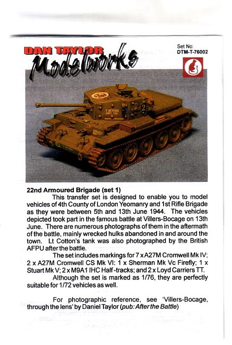 London Yeomanry and 1st Rifle Brigade as they were between the 5th and 13th June 1944. The vehicles depicted took part in the famous battle at Villers-Bocage