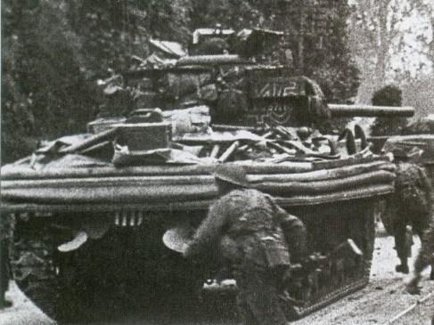 Mk III “11” Having the squared welded hoods, the cast rounded transmission cover, the “D” type antenna bracket and the M34 gun mount type, it was a Fisher tank. The forward right appliqué armour wasn’t clipped. The tracks were the metallic T49 type. The LCT number 1126/212/LCT IV was visible just under the right brush guard and 1126/LCT IV/212 on the right hood. The WD number is not known and the name has been subject of various interpretations, the same forum page above, reports as possible names AISNE, DESTRIER, DESERT, DESTINY, DESPOT and MESSINES. It had the number “24” chalked just backward the right appliqué armour. |