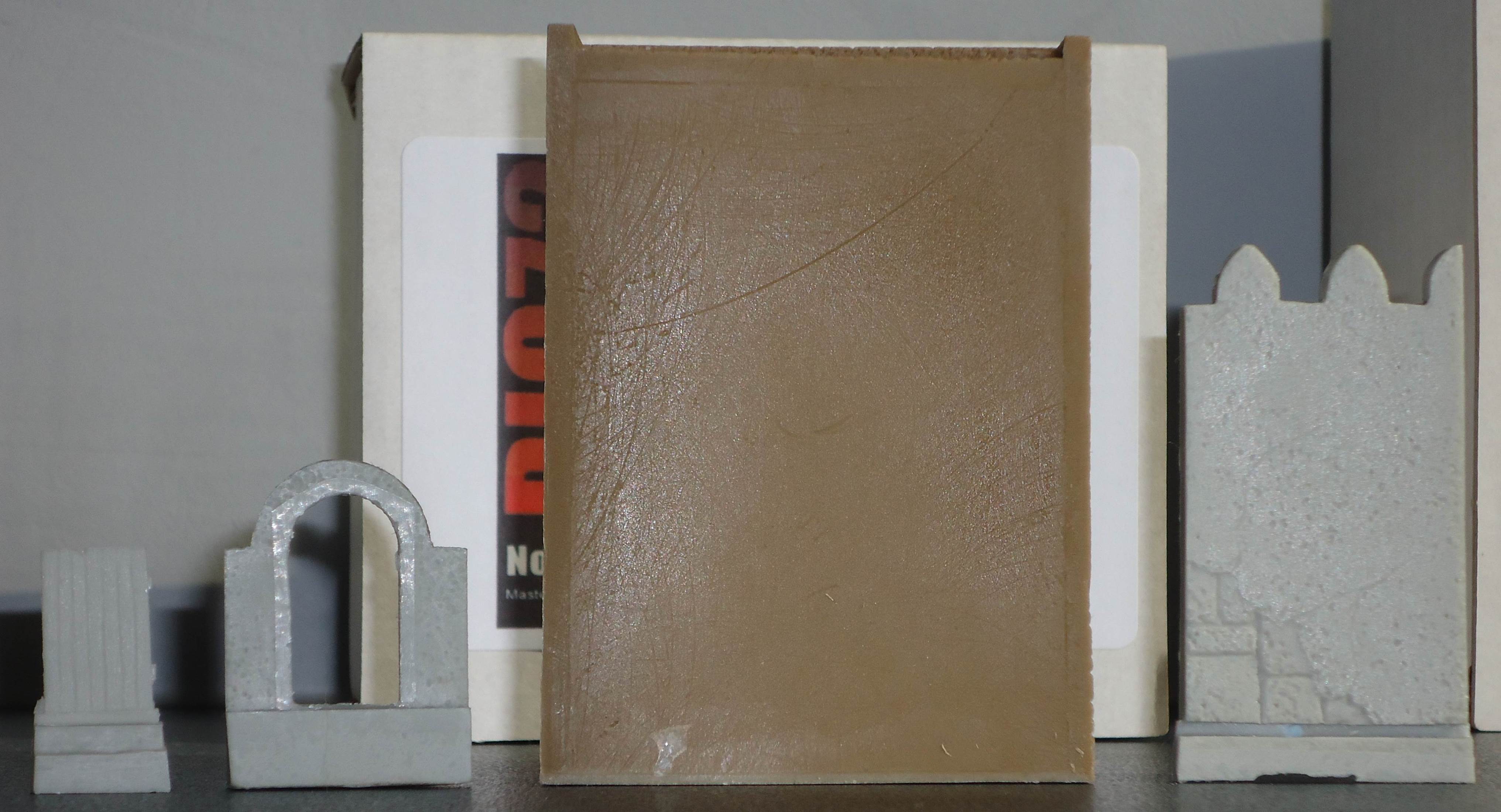 of World War II. The set contains 4 pieces, three cast in grey and one in brown resin. It seems Reality in Scale is using resin casting technology that is state of the art, as - even though the brown part is a massive block - no warping is present on the parts, not a single air bubble was found and detail is very crisp. Apart from removing three casting blocks on the grey parts, there will be no clean-up required whatsoever, meaning that, after priming, painting can start straightaway. While the grey parts have detail on both sides, the brown part is solid, with a flat back. In our scale, diorama items that have detail on both sides are rather rare, with companies using open molds. Most of the time this results in a visible back-side of the walls, where the texture is rough and devoid of detail. Basically, this mean that you only get half a building and that you have to scratch the other side yourself. Dio72 has opted for another formula, where the building is solid, with a clean backside, making it ideal as a backdrop of a scene, without actually integrating the interior of the building in the scene. All in all, a very nice set.