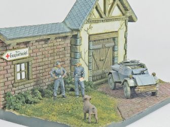 This set represents the front wall of a barn with mixed construction (timber frame and bricks) which would be typical for central Europe. Inside the sturdy cardboard box you will find two main parts of resin and two smaller parts for the doors. Despite the size of the parts, casting is as good as perfect, with some minor flash to be cleaned up.