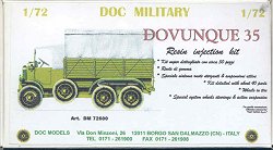 I was thrilled to find this vehicle available in small scale and recommend it as a display model or for wargaming. DOC has, or intends to release it in versions of a hard body radio truck (#72604), and an armored Dovunque Protetto truck (#72606). Other 1/72 scale DOC vehicle kits offered are the Italian WW2 era Fiat 626 COE type trucks, Lancia 3 RO heavy trucks, the TL 37 tractor, and an AS 37 Sahariano light truck.