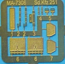 Until the release of this version I had successfully managed to resist buying any version of the Dragon Half tracks.This one was an exception, my excuse is that it isn't an APC but an Artillery vehicle despite there being a full and comprehensive interior included with the kit, with some of the nicest Kar 98's I have seen for a long time and it seems a waste to put them in the rack. The kit comes with some of the interlocking leaf wheels moulded together, some won't like this and would prefer separate wheels, however once the wheels have been assembled it is not noticeable even without the track fitted, once the track is fitted it can not be seen at all, the front wheels come with a fully detailed suspension. As far as I can work out the Rockets came in two sorts, the 32cm napalm rocket in a wooden frame and the 28cm HE rockets in a metal frame, the kit supplied frames seem to be the wooden type indicating that these are the napalm type rockets. One thing missing from the kit are the sighting vanes that were mounted on the front of the vehicle and these will have to be manufactured for an accurate kit. Often labeled as "Stuka zu Fuss"( "Walking Stuka" although Sqn Signal have translated it to "Stuka on Call" ) by some references, others call it "Bellowing Cow" or "Huelende Kuh" (I can be corrected on the translation) in German. Moulded in the now usual grey plastic that is slightly softer and easier to work with than the earlier lighter grey plastic used by Dragon. The Hull bottom is fully detailed. The Hull top and fenders, floor and seats for the interior, the Engine housing of the vehicle can be made open although no Interior/Engine is provided, this is one for the aftermarket boys. The main suspension parts plus various hull and interior fittings Two of these sprues are provided and contains the outer road wheels and the tyres along with weapons and tools There are 3 of these sprues in the box containing the rockets, frames and mounting brackets for the vehicle. The PE fret contains the number plates, various fittings for the interior and rear mud guards The other PE fret contains better detailed mounting brackets. The Decal sheet is comprehensive, but you have to make the number plates yourself, which theoretically means that you can make any vehicle, but might get a headache doing it. The Tracks are in DS styrene and nicely detailed, with them being DS it means that you can get them to sit on the wheel tops properly without trouble, also the links are small enough so that it is not noticeable that they are flexible. A highly detailed kit, I have never seen the Esci version of this vehicle so I can't compare it, but given the time between the release of the kits, I would imagine that this is miles a head of the old Esci kit. The kit measures out to 1/72 from the references I have. References SdKfz 251 in Action Sqn/Signal Publications SdKfz 251 Half-Track 1939-45 by Bruce Culver and Jim Laurier, Osprey New Vanguard 25 SdKfz 251 Militaria 012 Schuetzenpanzerwagen War horse of the Panzer Grenadiers by Horst Scheibert, Schiffer Military History Die Halbkettenfahrzeuge des Deutschen Heeres 1909-1945 by Walter J Spielberger Motorbuchverlag |