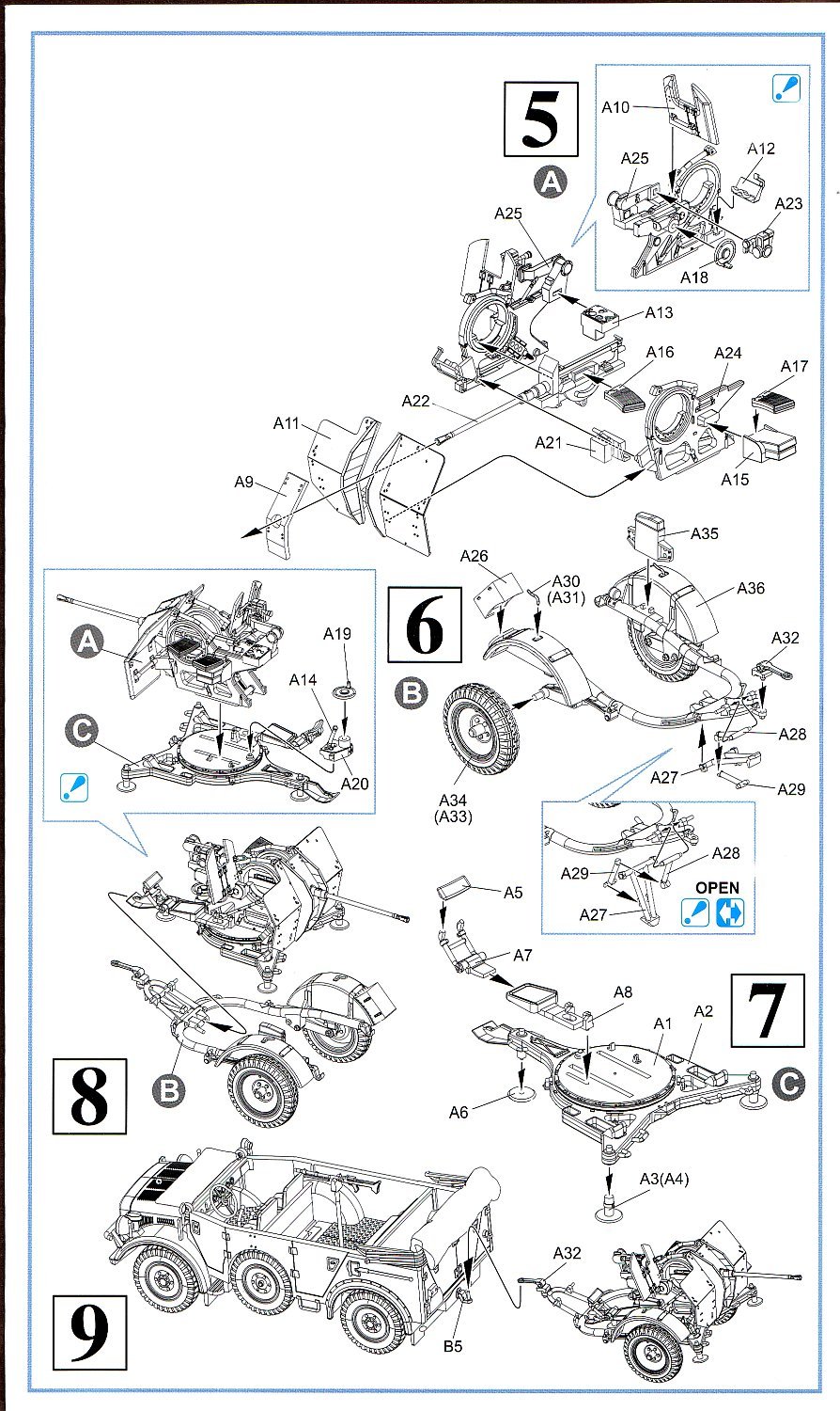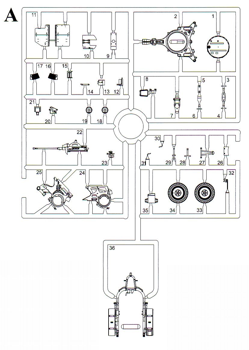 The gun is part of a two kit set containing Dragon's previously released Horch and a new sprue (A) for the 2cm FlaK 38 and its Sd.Ah. 51 trailer. Parts count is 36. This is a typical Dragon