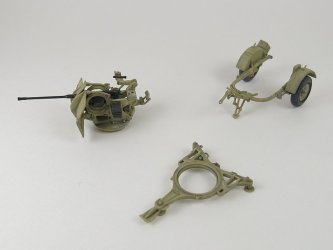 The sights (part A23) have both a telescope sight as well as the Flakvisier 38 sight. The biggest issue with the kit is the inability to pose the gun with an elevated barrel.