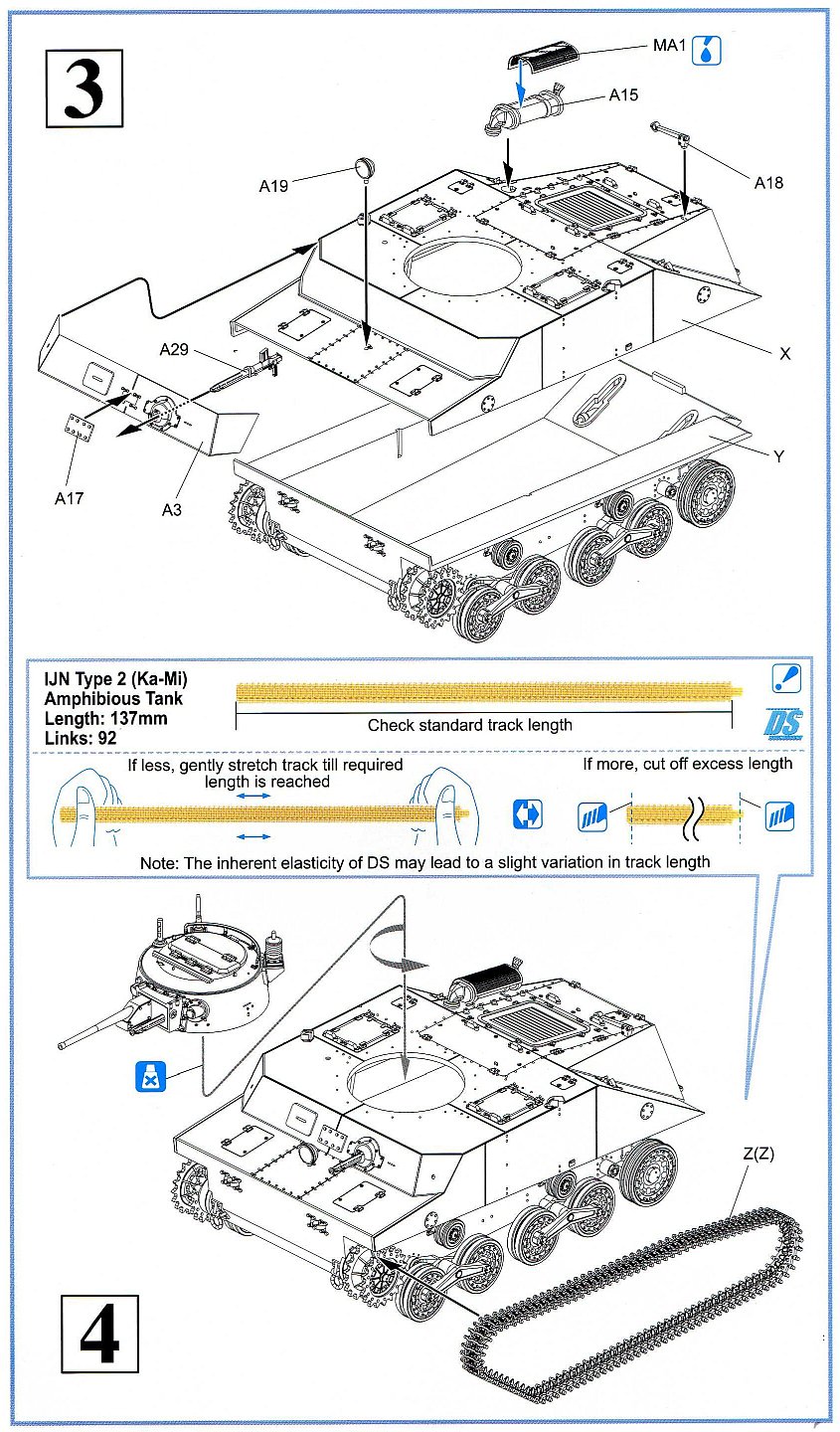 The IJN Type 2 (Ka-Mi) Amphibious tank is the first Japanese tank of this type with 184 built, all by hand. It is based on the suspension of the Ha-Go tank and could be launched from submarines and even carry torpedoes! It was mostly encountered in the Marshall Islands and Marianas, especially Guam, but they were usually dug-in. There is a surviving example with full pontoons at Kubinka, Moscow and a hull in the bush near an airport on the Island of Palau. [1] On the box top we have the Ka-Mi in an aggressive mode, belching black smoke with another Ka-Mi behind. In the background is a grouping of Japanese troops. The artist of the box-top artwork can't be found. The box states there are around 45 pieces. Upon opening the box, we can see it's mostly full of air. The kit only comprises one sprue, hull top and bottom and header card with tracks, small sheet of decals and one tiny photo-etch square of screen taped to the card in typical Dragon fashion. This is a small kit, the top hull only measuring roughly 2 3/4 inches long. A lot of empty space in the box should be expected this time. The instructions show the kit being assembled in four very largely printed steps that could be compressed into three as as the fourth step is only adding tracks and the assembled turret. You can have your Ka-Mi tank in any color; as long it is dark grey. Two marking schemes are provided. One on Saipan in '44 with the rising sun flag on the turret, and "601" from Aitape, July-August 1944. While taking the parts out of the baggies for photographing, I played with the fit of the upper and lower hull halves. They seem to have a snap-tight fitting, but without pushing hard I noticed you may end up with the sponson pieces peeking out underneath the hull. Attention will be needed here. I also took note as you will, of the strange attention to detail when it's not needed and a lack of detail where it certainly could be used. Two beautiful machine guns with ammo mags popped out at me, but the hull machine gun location hole is not even drilled out to receive it. With the top turret hatch open maybe the idea was the other machine gun would be visible, but Dragon did not make a breech for the main gun, which would also be visible. This will be a great weekend builder or even quicker. A Ka-Mi with full pontoons is expected soon, and should help fill the otherwise nearly empty box. References: Review sample purchased by the author. |