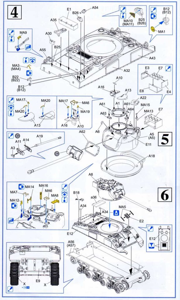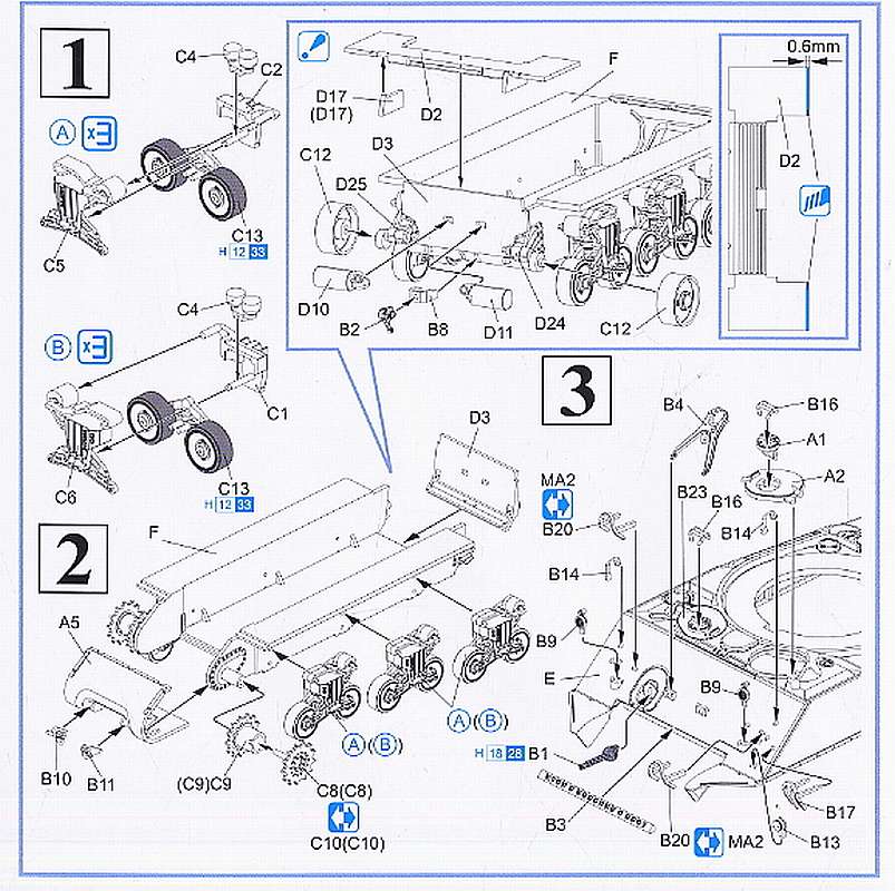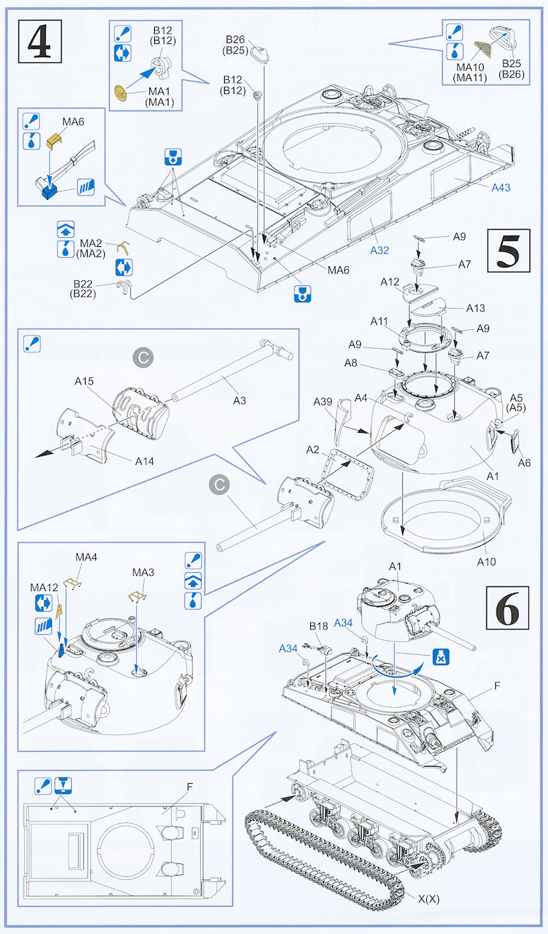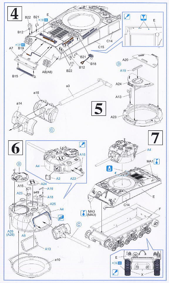 of the parts of sprue A, blue A, B and E are blued-out, amongst