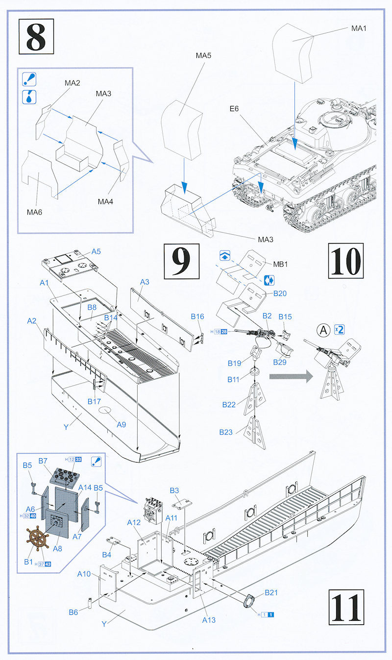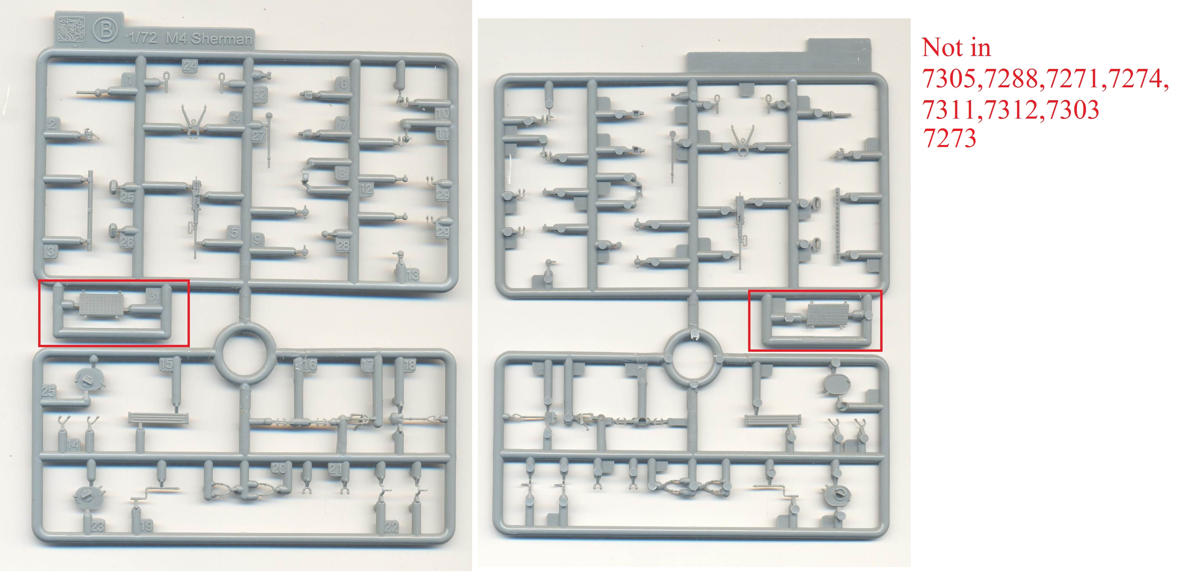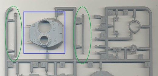 Sherman MkIII: Most of the parts of sprue B are blued-out,