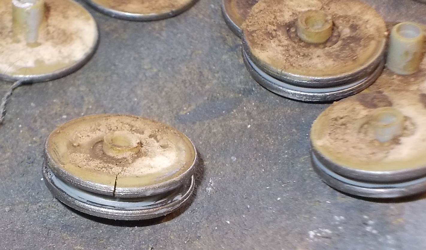 wash with diluted oil-paint some of the wheels split radially. Plastic