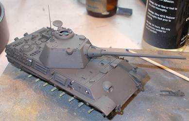 Modelers familiar with this kit know that this is one of the earliest Dragon releases with "conventional" (i.e. old school) vinyl tyres and metal hulls. The latter are notorious for their penchant to develop some kind of metal rot, which makes them disintegrate after some time. As I didn't fancy the idea of investing a lot of time in a kit that might have a short display-cabinet-life, and as the metal hull doesn't really allow for any real tweaking anyway, I opted to build the kit mostly out-of-the-box and did away with any measurements against scale drawings. Construction starts