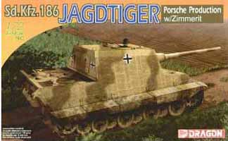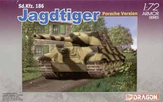 | A year or two after the release of the original Porsche Jagdtiger kit (7250) Dragon realized that most Porsche Jagdtigers carried Zimmerit and that this would be hard to do for most modelers. They therefore retooled the kit and gave us a new one (7291). Not only did they add Zimmerit and DS tracks instead of the old black vinyl ones, but it seems they also refined almost every sprue. The latter is just an impression; the sprues are clearly the same, I only feel the later kit has somewhat sharper detail. It just might be because they used a slightly different kind of plastic, or because of a minor clean-up of the molds.