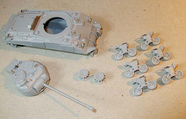 Dragon had a bit of a shaky start in the world of small scale armour but they have pulled up their socks and continue to go from strength to strength. Making extensive use of slide mould technology and including photo etched parts as standard, their latest kits are a joy to behold and for only a couple of quid more than Revell's armour kits. I'm pleased to say, at least in this case, that they go together as nicely as they look in the box. Be afraid Revell, be very afraid.... Parts fit was extremely good and I had absolutely no problems with construction. The DS Styrene tracks were very well moulded and worked as advertised though, being my first encounter with them, it did seem rather strange using standard styrene cement to hold them together. Some may complain that link and length tracks aren't included but frankly I often find them to be a royal pain in the ass to assemble so was more than happy with these "rubber band" tracks. Of the four different markings options, two of them are captured German examples which I find rather odd. Of all the allied forces that used Fireflies, surely Dragon could have come up with something more original than this? I chose the Canadian markings for mine, the other option being British.