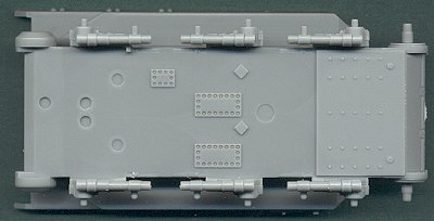 The bolt detail is great. Lift hooks are molded onto the upper superstructure corners, and though they are a bit thick, they can easily be sanded to the appropriate thickness. I'm not real happy with the gunner's periscope, which is molded onto the superstructure roof, with no opening in the covering plate. The hull bottom is also completely detailed.