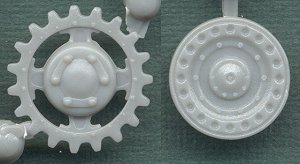 I am also disappointed in the commander's cupola. No open hatch; no vision blocks; no clearly defined guard rail. I don't know what their intent with this piece was, but they obviously failed (unless of course, their intent was to make an unrealistic, poorly-detailed and undefined lump of plastic, in which case, they succeeded admirably). And finally, the real shock, the tracks: