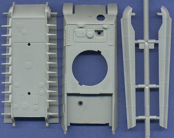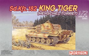 ![]() So apparently Dragon is beginning to listen to modeler's feedback. This kit represents in my opinion, their first really nice model. There are a few features that I think could still be improved upon, but the same can be said of almost any manufacturer. With this release, I think that Dragon has finally entered into the ranks of decent small scale model makers. The main hull is provided in plastic; in fact, the entire kit is plastic, which is certainly what we have all been asking for since their earlier cast metal-hulled kits. It looks as though the mold for the hull has not been altered at all from when casting the metal kits, but they simply used plastic as the casting material instead of metal. Consequently, the hull has a very "heavy" feel to it, with very thick and sturdy walls. This poses no problems, except for wanting to open up the hatches. The radio operator's hatch is molded open, but with a screw alignment hole inside, which may need to be removed (though it might provide a good mount for a crew member's bust). The driver's hatch is closed, though a spare hatch is provided if the modeler chooses to carve open the hull. One of my few complaints about this kit is the molded-on tools. Everything is molded onto the hull, and no spare tools are included. Luckily most of the tools are on flat, easily accessed surfaces, so removing them should be no difficulty. There are two holes needing to be filled on the hull bottom. With the overhanging fenders, it will be difficult to mount the wheels and tracks. Sometimes the "advantage" of molding the lower hull all as one piece is not much of an advantage at all. Like the Panther kits, the King Tiger provides a flat insert beneath the engine deck to allow some engine detail to be visible beneath the ventilation grates. The main engine access hatch is molded open, but I don't feel that the flat "engine" is really adequate to be viewed with an open hatch. Perhaps someone will soon provide an engine set for the King Tiger. We seem to have a plethora of available kits to use with it. Several spare parts are included, though not to the extent as with the Panther kits. The spare track links are very nicely done. The wheels are absolutely gorgeous. The turret is also very well done. There are a couple of options here, including an armored ventilator cover, and the choice between early or late gun mantlets. All turret hatches are open, including the rear loading hatch. I don't like the tracks, though others probably will. They are nicely detailed, though slightly twisted, and considering their width, I think it will be difficult keeping them from bending in half as they wrap around the sprocket wheels.