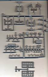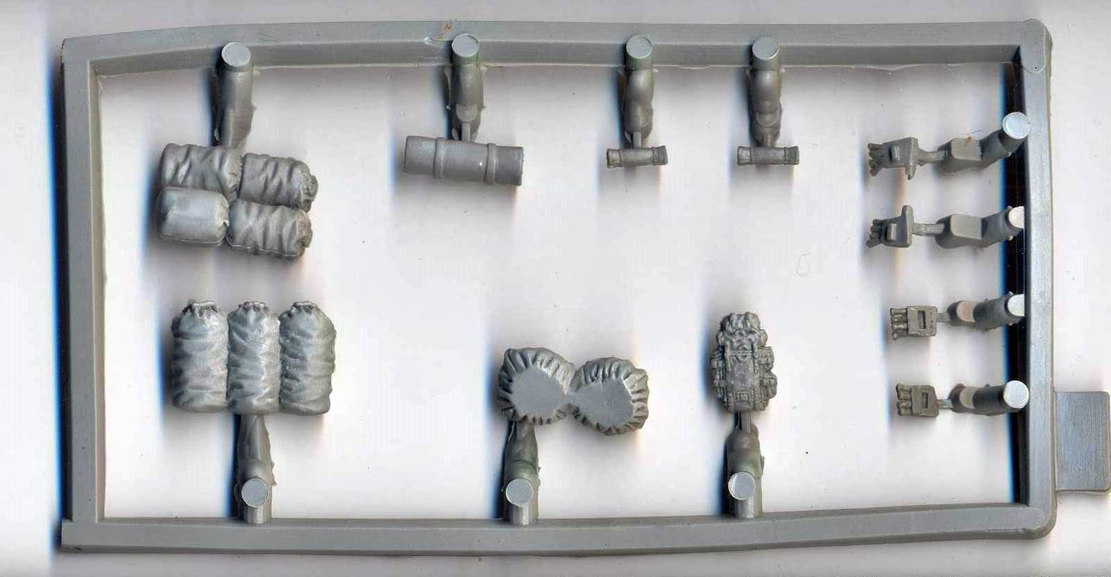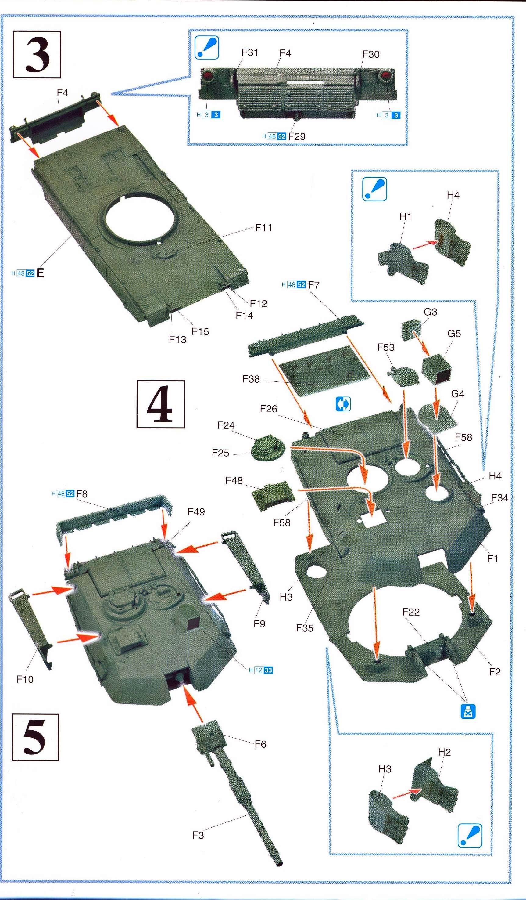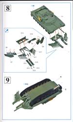 I admit that I don't know a lot about this tank, so in order not to say anything stupid, I'll just give a scan of the sprues and instructions and hope that this is of any use to someone. More knowledgeable people have reviewed the two sister kits of this one. I can only assume most of what is said there applies here as well. The main sprues. Rubber tracks. Vinyl (!) bags and personal belongings. Metal parts to hold the hull together and to allow the sprocket and idler to spin. (The kit was originally meant to be motorized.)