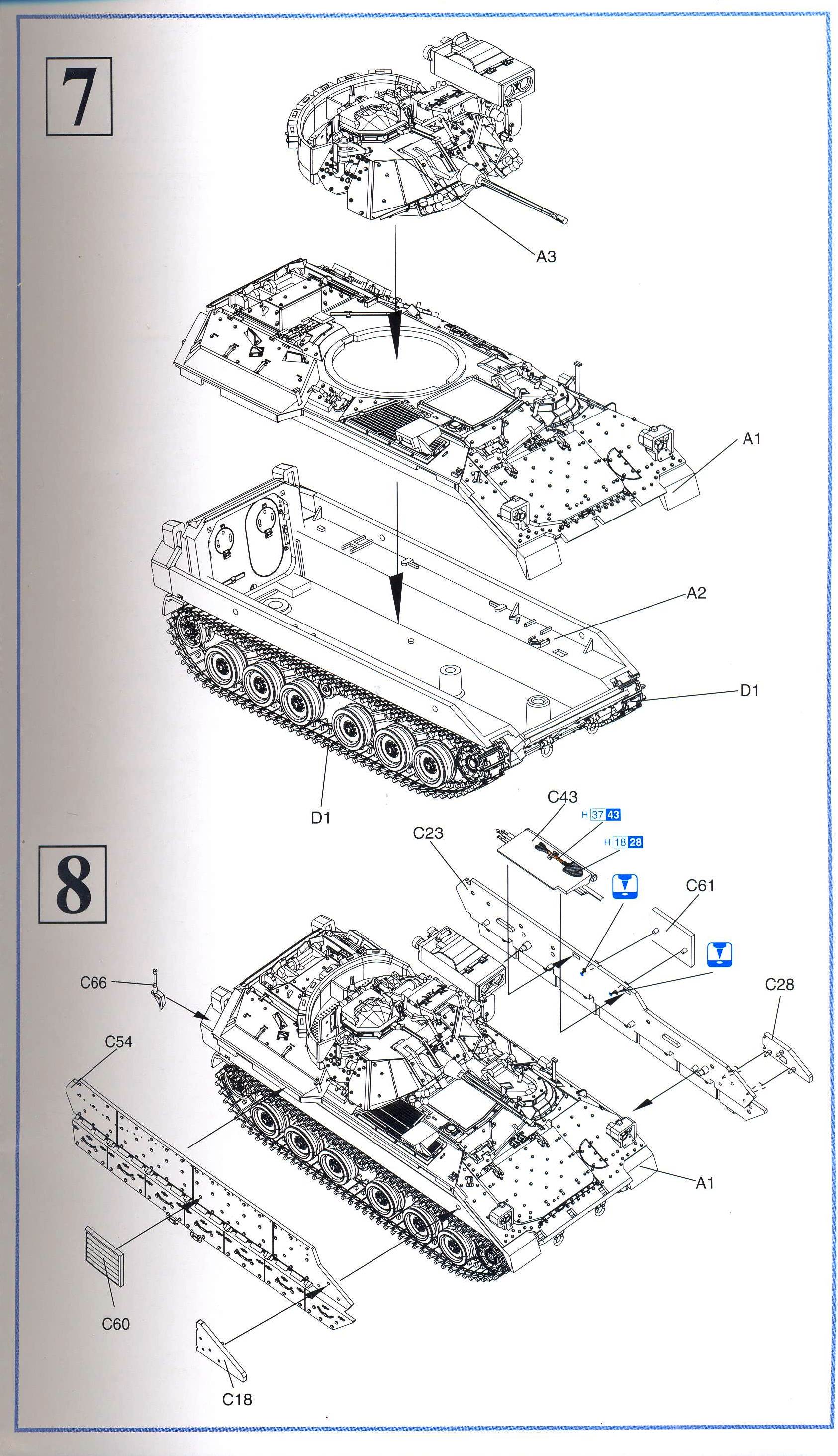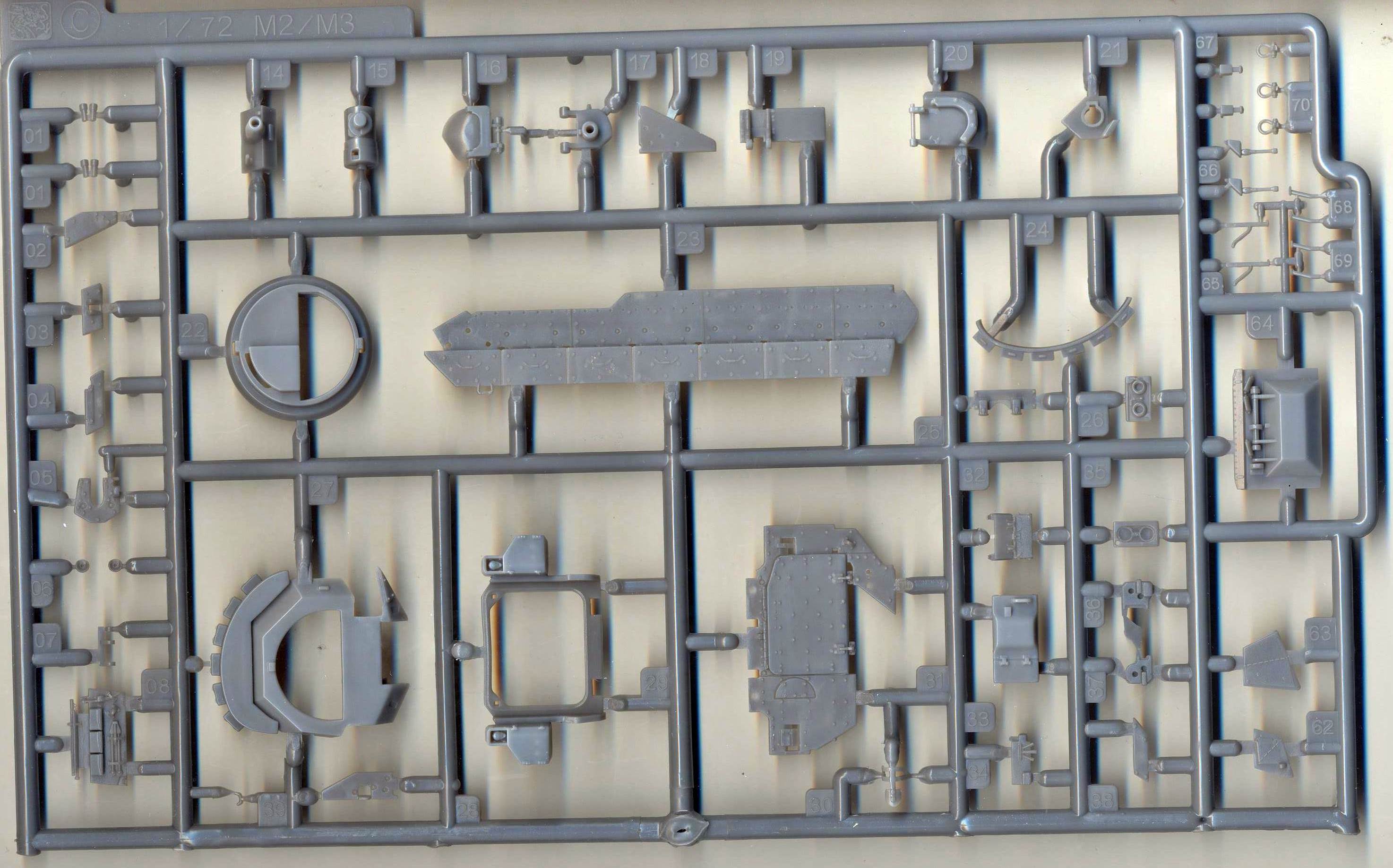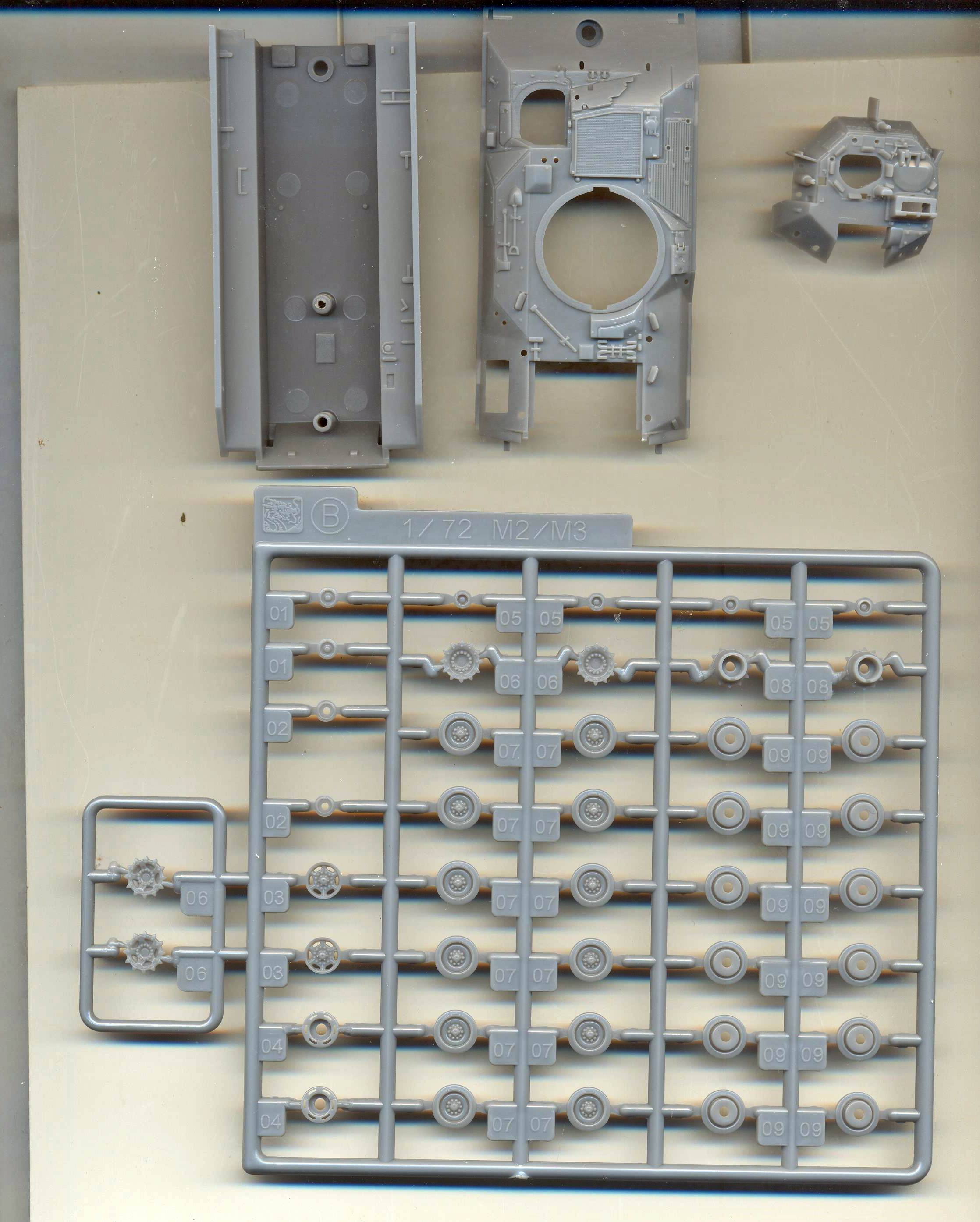I admit that I don't know a lot about this AFV, so in order not to say anything stupid, I'll just give a scan of the sprues and instructions and hope that this is of any use to someone. I am sure someone more versed in the matter will stand up some day to tell is more. The main sprues. Rubber tracks. Vinyl (!) bags and personal belongings. More vinyl parts !