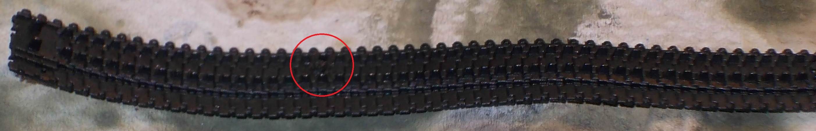 Construction begins with the wheels. For some reason, the middle wheels need to be fitted with an axle holder (part B11), of which there are some to spare. If you follow the instructions sheepishly, you will be gluing all wheels together before joining them to the hull. This, you will regret, as with the interleaved roadwheels there is no way you will get them installed on the hull. First glue the inner row, then the two middle rows and then the outer row. If you add the idler as Dragon would have you do, then it will interfere with the rearmost roadwheels and it will end up on the wrong side of the track teeth. (The manual shows the crooked installation that will result.) To me, the only way to solve this is thinning the idler halves until the assembled parts line up correctly. See pictures below.