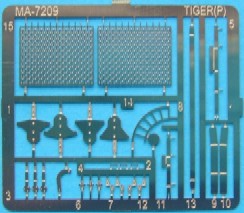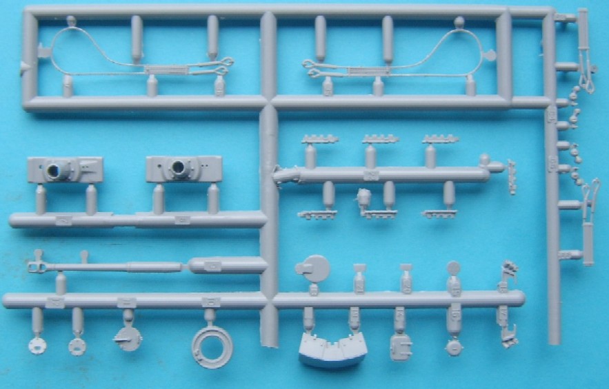 Dragon have finally released the Porsche Tiger I although instead of making the pre-production Tigers, they have chosen a specific vehicle that served on the Eastern front namely Fgst Nr. 150013. Incorrectly labeled and boxed as a Panzerkampfwagen, according to my references it should be a Panzerbefehlswagen. There was some debate about this particular vehicle having zimmerit, which is not depicted in the kit and because of the moulded on tools and tow ropes, would be difficult to replicate without first removing the items. However that said I am now not sure whether the Zimmerit was applied in the field or not and that the vehicle was for a while without zimmerit? the basis of this is just one photo, where it is difficult to see the Zimmerit if it is present or not. It could be that the picture quality just doesn't show the Zimmerit, as according to other photos it was a very faint pattern a can be seen below. Anyway to the kit. The kit shares a few parts with the Elefant Armour Pro kit 7253, the running gear and tracks coming from this kit, the surprise is that it also includes parts from the Bergpanzer Tiger(P) mainly the crane and some hull fittings. The kit also includes the Tiger Turret sprue from that kit, which has the incorrect symmetrical turret plus two mantlets for the main gun an early and late pattern and the tiger stowage bin and other various fittings. The good news is that although the kit has the old Tiger turret [Ed. note: it's not the oldest Tiger turret from Dragon, but it is indeed older than this kit.], it does include a new turret roof on a different sprue which is the correct asymmetrical shape, and although the turret sides are not entirely correct these should be easier to correct than the incorrect roof. This is the incorrect roof, as you can see it is symmetrical. This is the correct roof, as you can see there is a small gap at the front caused by the new shape, which can be easily glued. To the Sprues