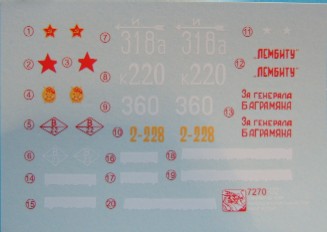 The cupola is the one piece hatch type as in the Revell kit. However unlike the Revell kit the top of the cupola is wrong. Dragon have made the hatch and top a 50/50 split whereas is real life the it is more of a 60/40 with the actual hatch being the bigger piece, however the periscope is provided as a separate item. The star of this kit has to be the PE set, not only does it include all the "Bedspring" armour fitted during the advance into Berlin but is also has a new radiator/Fan cover with bolt detail it also has positional vents for under the cover and all the engine deck intakes in PE as well, all the mounting brackets for the armour are supplied as PE and there are various PE fitting to enhance the vehicle, this set better and more appropriate than most of the aftermarket set that you can buy ! The Decals are well printed in register and nice and thin Markings are provided for 5 vehicles With the exception of the cupola, this is a very nice and complete kit from Dragon, another plus is that the Armo Barrel fits into the turret without modification. References Russian T-34 battletank by Horst Schiebert Schiffer publications T-34 in action By Steven Zaloga and James Grandsen Squadron/Signal Publications T-34/85 1944-1994 by Steven Zaloga And Peter Sarson Osprey New Vanguard 20 Unknown T-34 Russian Publication so I can't understand a word but great drawings and pictures Tankomaster Hull Drawings M-Hobby Hull and Turret drawings Plus Various other Russian Publications that when I find out what they are called in English I will add to the list |
