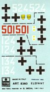 The decals in my kit are not too bad. The vehicle numbers are single color, and the crosses and unit markings are actually printed in pretty good register (this reviewed kit was a fairly recent release, being made in Mexico in 1999). I am not sure about what sort of markings are included in earlier releases.