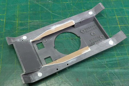 of HSP, springs are also made for the front mudguards. There is a large gap between the rear-mudguards and the rear hull-plate that is filled with a piece of plastic strip as shown in the picture below. |