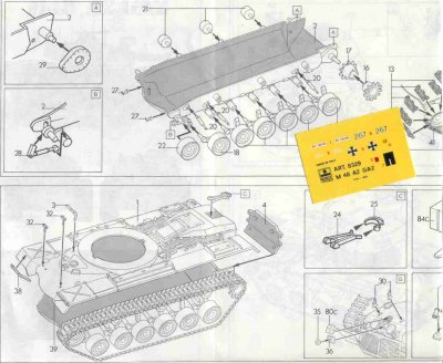 Instructions are very good and typical of ESCI models. The placement of the shock absorbers on the forward and rear roadwheels are unclear. Perhaps Italeri will release new instructions or duplicate the ESCI instructions.