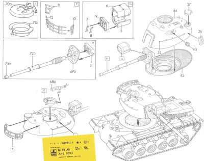 The basic ESCI M48 kit features of hull, turret and wheels discussed in this review reflect the other M48 variants released by ESCI.
