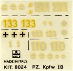 Again, my decals are very old and yellowed, but you can see that four marking options were included, which is quite impressive, including two from the Afrika Korps.