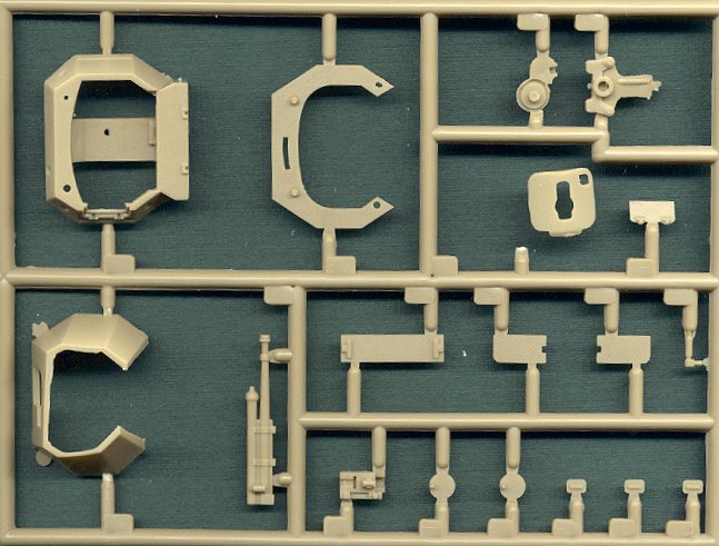 As is normal with the ESCI models, this kit had its tracks changed from the early, belt-type vinyl tracks to hard plastic link ad length tracks in the ESCI/Ertl release. The early tracks aren't as horrible as most vinyl tracks, though it will be difficult to replicate track sag. The hard plastic tracks are nicely done, though a little thick, which makes the vehicles sit a little tall when complete.