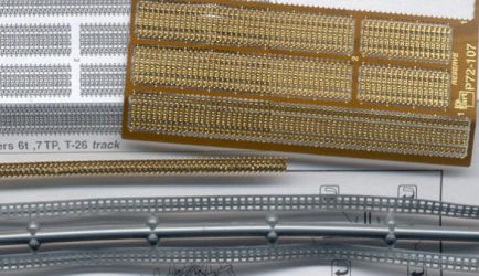 At top is the Part Company 1/72-scale etched brass track set P72-107 for the T-26, Vickers 6t, and 7TP tanks though I believe this track is suitable for the 1/72 Pz 35(t) model and the track looks more accurate and in-scale than the ESCI kit track.